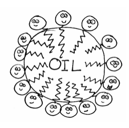Micelles have a couple of useful properties – the oil soluble tails can interact with other oil soluble materials like dirt and oil, and sort of trap them inside the micelle away from the water. That’s how micelles allow surfactants to mix oil and water soluble materials.