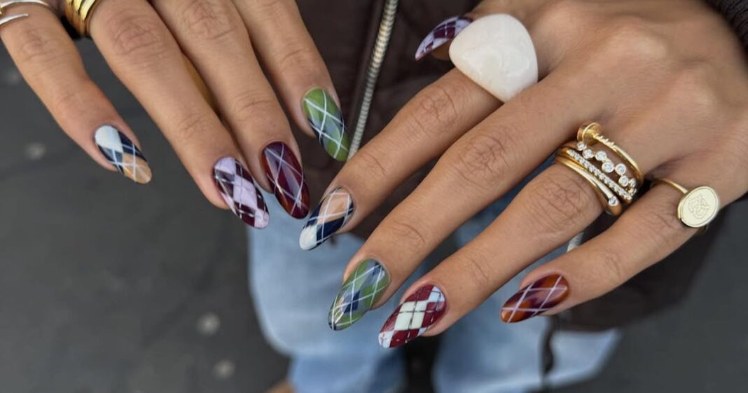 With overlapping diamonds and clever use of negative space, argyle occupies a cozy space between harlequin and plaid. Inspired by the tartan of Scotland’s Clan Campbell, it’s a classic winter knit, but this season it’s bigger than ever, popping up everywhere from Zara to Sandro. It was only a matter of time before manicurists drew from the pattern. Head to Instagram, and you’ll see that the biggest nail art trend this winter is, in fact, argyle.