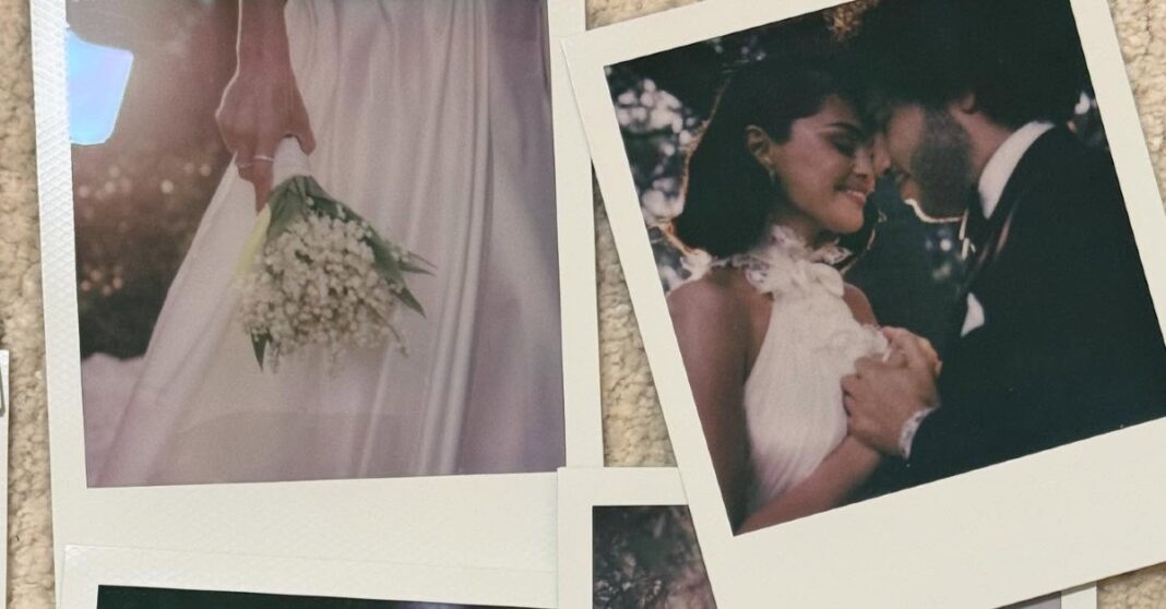 Forever begins now: Selena Gomez married producer and songwriter Benny Blanco last night at an intimate ceremony in Santa Barbara, California. In a series of (very chic) photos the star posted to Instagram, we can clearly see that Gomez’s look radiated timeless elegance—from her halter Ralph Lauren gown to her iridescent, oval-shaped nails to her glamorous, old Hollywood bob.