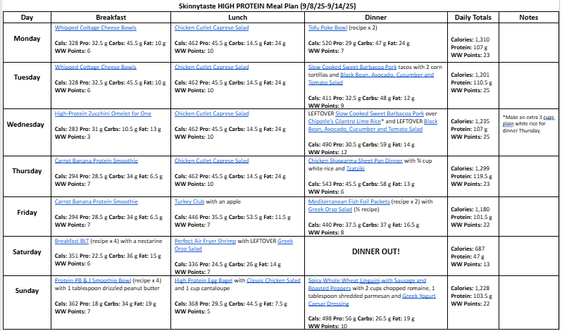 As many of you know, I’ve been following a high-protein diet for the past few years for muscle gain, and it’s been a total game changer for me! I feel stronger and more satisfied, which keeps me from reaching for sweets or chips between meals or at the end of the day. I know a lot of you struggle with hitting your protein goals, so I was inspired to create this high-protein meal plan for the week. If you enjoy it, I’ll share 1 or 2 each month. Plus, I’m working on a high-protein cookbook, so stay tuned!