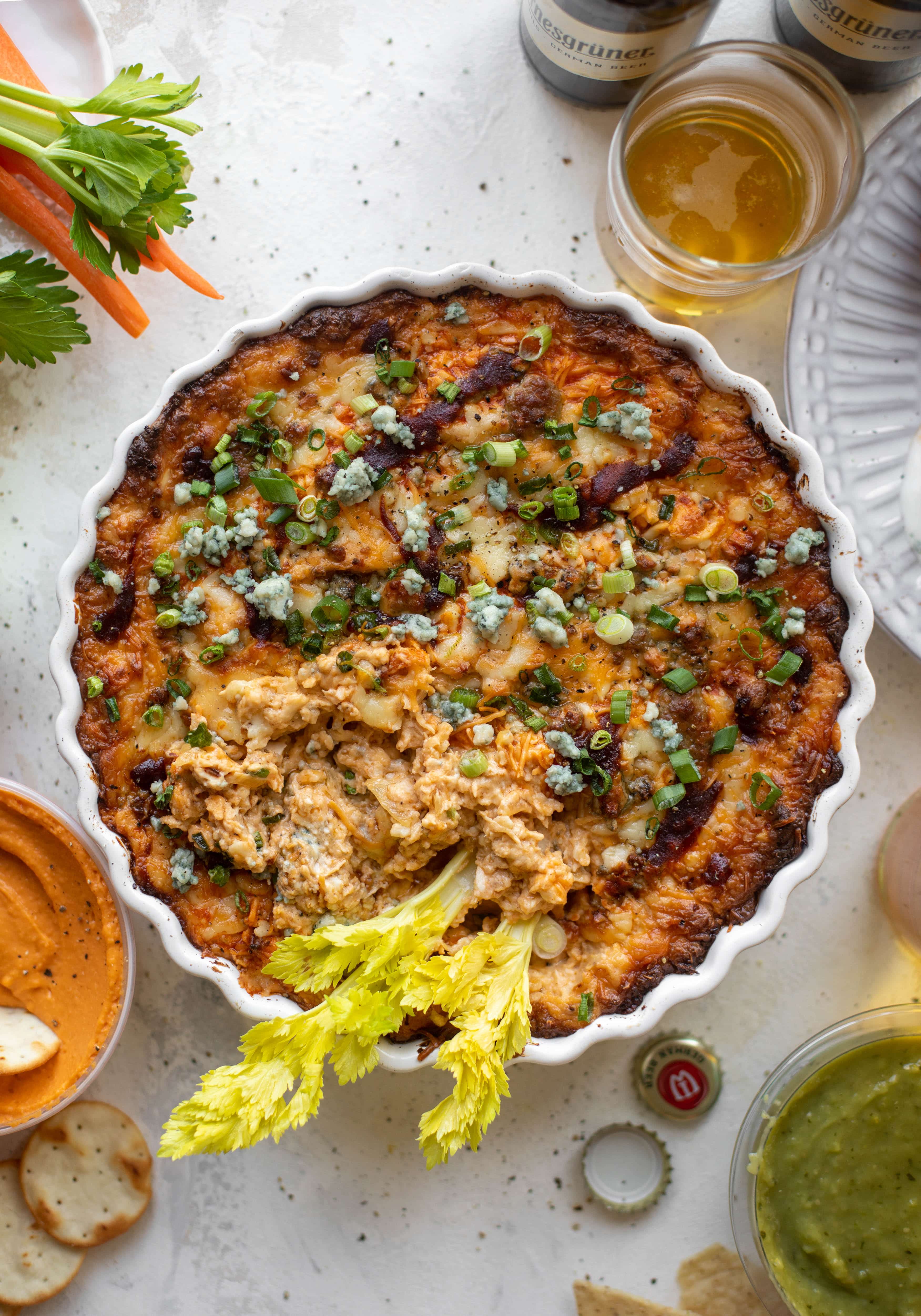 Loaded wing dip with beer caramelized onions