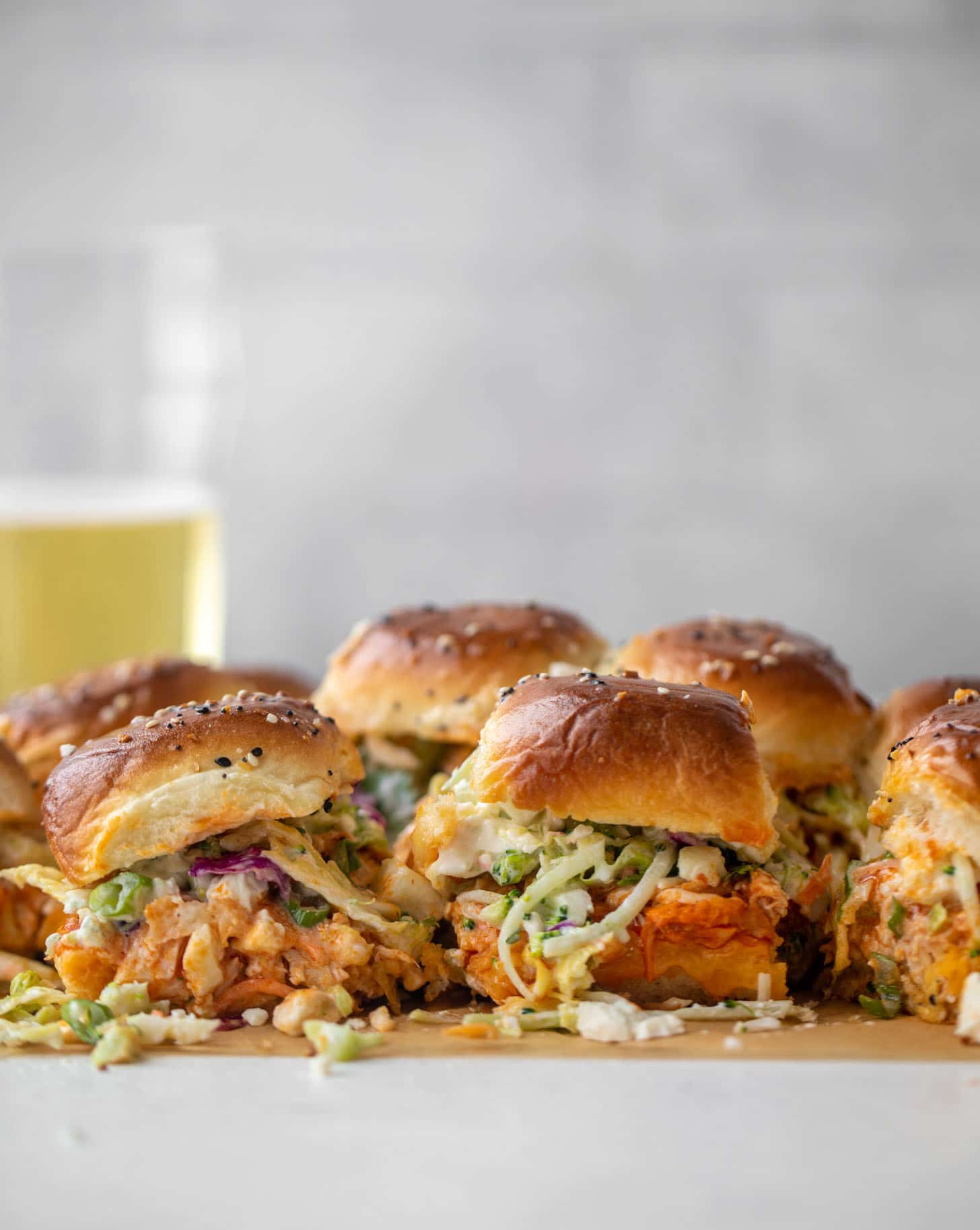 Pull apart buffalo chicken sliders