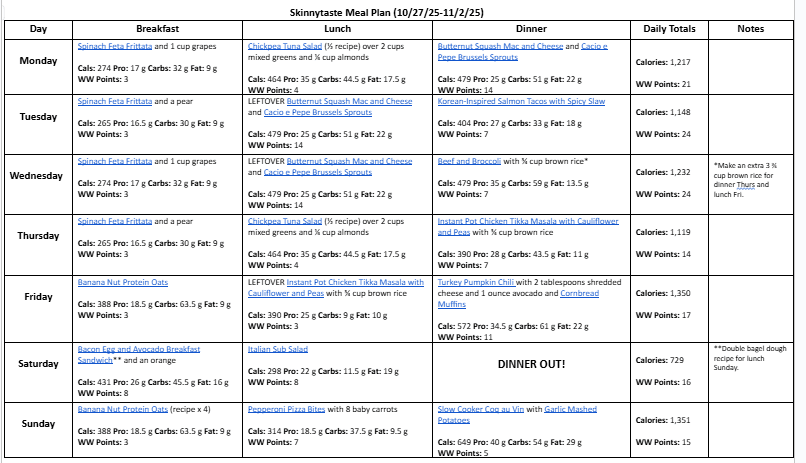 Free 7 Day Healthy Meal Plan (Oct. 27-Nov. 2)
