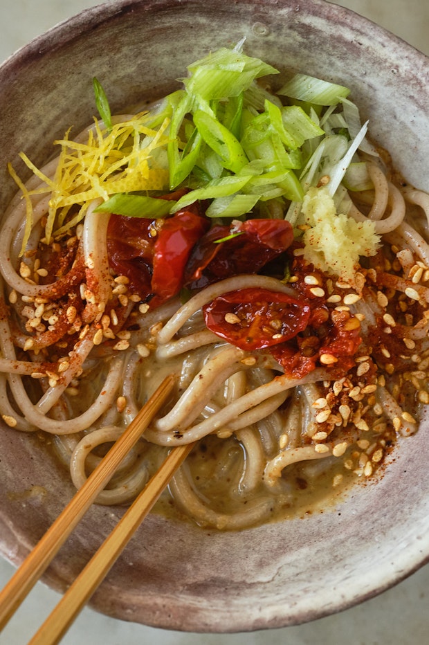 - Soba: I love the combination of buckwheat soba noodles and sesame and soba traditionally works well with sesame sauces similar to this one. Soba is a frequent go-to when I make this recipe and cold soba, in general, is summertime wonderful.