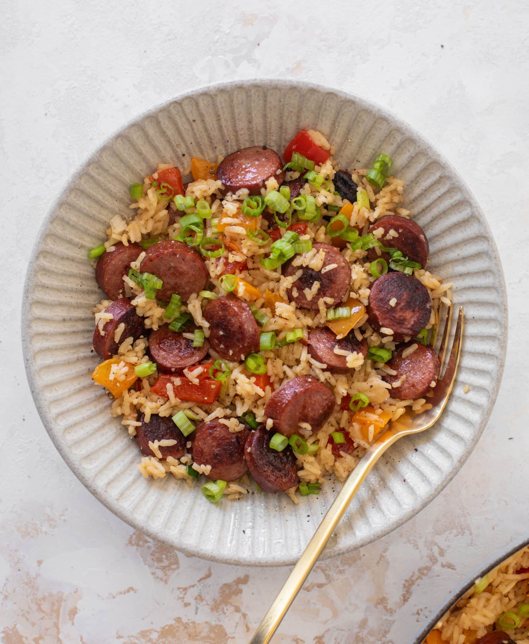 This one pot smoked sausage and rice is super simple and tastes amazing! This dish cooks quickly, uses smoked turkey sausage and fragrant jasmine rice. It’s so satisfying and a great meal to prep for lunch too.