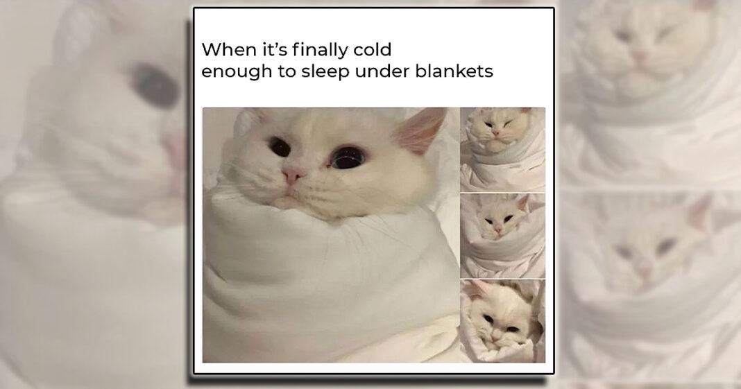 Is it cold outside? Are you feeling extra eepy even earlier these days? Do you feel the urge to get cozy and forget the outside world? Then get yourself a cat to cuddle and keep you warm, curl up in a blanket with them, and LOL at these feline feel good memes together below. That’s right, it’s cozy cat season and we love it. Heck, you’ll probably need another feline friend this season because it already feels too cold to chill. lol You know what we mean…