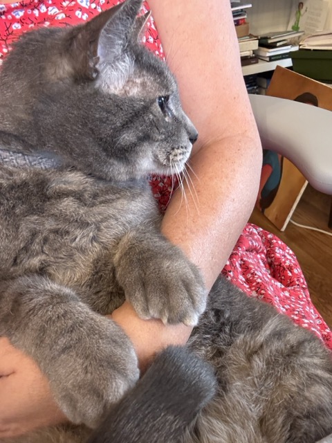 I need to add a picture here but I don’t have a good one so instead here is Ferris Mewler in my lap right now as he watches the squirrels outside of my office.